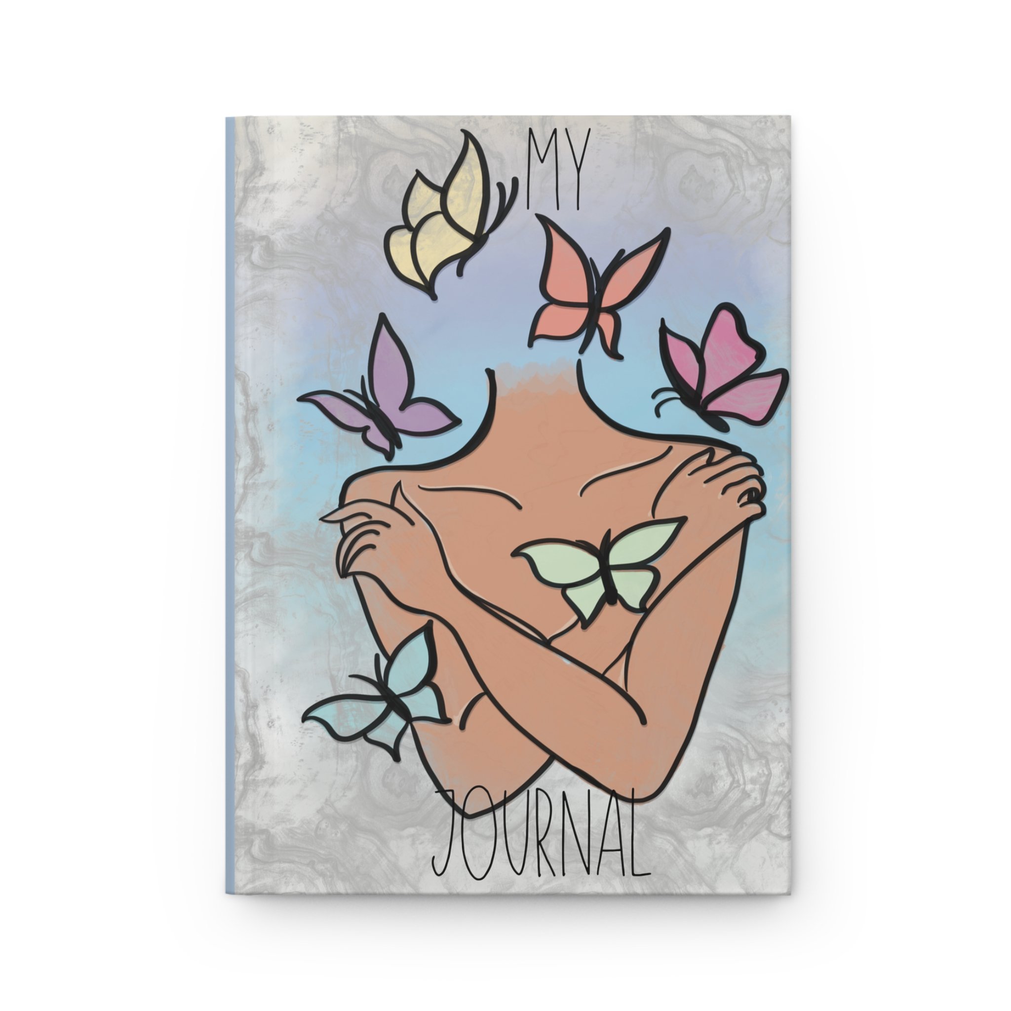 A soft, matte hardcover journal wrapped in a dreamy butterfly motif. The cover shows an embracing figure surrounded by pastel butterflies that seem to lift off the page — a quiet, safe place to collect thoughts, sketches, and small rebellions. The matte laminated finish gives the art a velvety touch while protecting it from everyday wear. Inside, 150 lined pages with perforations let ideas stay or fly away when you need to share or reorganize. The sewn casewrap binding keeps the journal flexible and lays flatter for writing. Subtle repeat-pattern endpapers and a full wraparound print make this feel like a finished object you’ll reach for often.